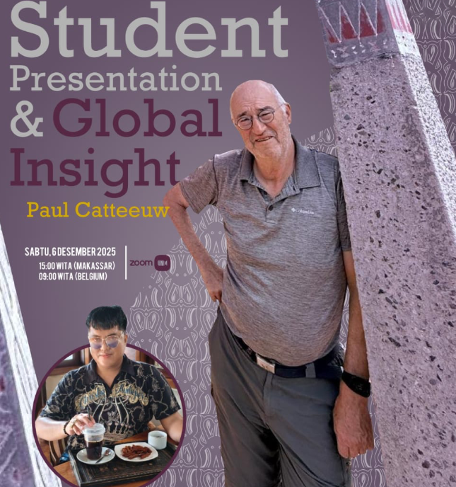 The National and International Tourism course at Department of Tourism, Faculty of Cultural Science (FIB), Hasanuddin University (UNHAS) successfully held its final presentation session featuring six student groups from the 2025 cohort on 6 December 2025. The event, titled Student Presentation & Global Insight with Paul Catteeuw, brought an exceptional collaborative experience for students as they presented their research and project outcomes, followed by an international sharing session led by Paul Catteeuw, an experienced global practitioner.