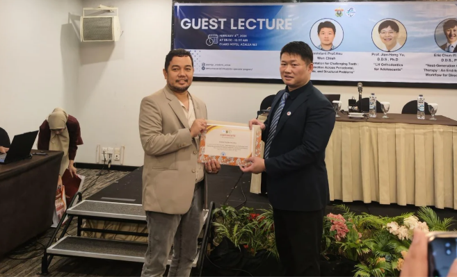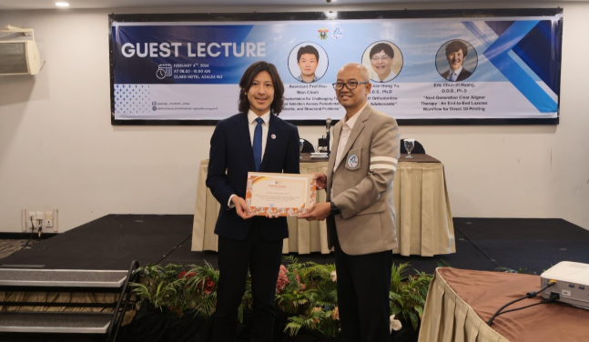 The Departments of Orthodontics and Pediatric Dentistry Faculty of Dentistry (FKG), Hasanuddin University (UNHAS) held a Guest Lecture for students of specialist programs in Orthodontics and Pediatric Dentistry on Wednesday, 5 February 2026, from 08:00 to 10:00 am. The academic event aimed to broaden residents’ knowledge of contemporary orthodontic and interdisciplinary dental treatments. The main lecture was delivered by Prof. Jian-Hong Yu, DDS., Ph.D, a faculty member of the School of Dentistry, China Medical University. Prof. Jian-Hong Yu, DDS., Ph.D, who is commonly known as Prof. Kenko presented a lecture entitled “LH Orthodontics for Adolescents,” focusing on modern orthodontic approaches for adolescent patients, emphasizing growth considerations, biomechanical principles, and evidence-based treatment planning.