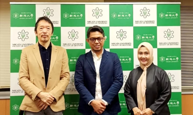 The Dean of Faculty of Dentistry (FKG) Hasanuddin University (UNHAS), Irfan Sugianto, drg., M.Med.Ed., Ph.D., Sp.RKG together with the Head of the Specialist Program in Dental Radiology, Prof. Dr. Barunawaty Yunus, drg., M.Kes., Sp.RKG., Subsp.Rad-D (K) conducted an official visit to Niigata University, Japan on 10-12 November 2025. During the visit, the delegation was warmly welcomed by the Dean of the Faculty of Dentistry Niigata University, Prof. Makoto Inoue, DDS., Ph.D.