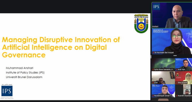 During his presentation, Prof. Anshari discussed the dynamics of Artificial Intelligence (AI) disruption and its implications for public policy and digital government governance. He emphasized the vital importance of transforming knowledge management and strengthening human resource capacity to face global technological shifts. The material provided an international perspective highly relevant to the development of curriculum and research within the field of public administration.
