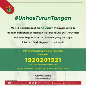 Melihat perkembangan situasi yang terjadi di masyarakat, Universitas Hasanuddin memutuskan untuk turut berpartisipasi memfasilitasi penggalangan donasi sivitas akademika, alumni, dan warga masyarakat. Penggalangan donasi ini