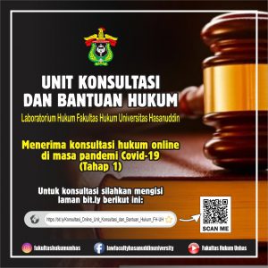 Di tengah situasi wabah pandemi global Covid-19, Universitas Hasanuddin melalui Laboratorium Hukum Fakultas Hukum menghadirkan layanan konsultasi dan bantuan hukum gratis secara daring. Layanan ini
