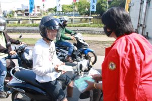 Dalam rangka pencegahan dan penanggulangan penyebaran Covid-19, Fakultas Ilmu Sosial dan Ilmu Politik (FISIP) Universitas Hasanuddin membagikan masker kepada pengendara roda dua dan empat yang