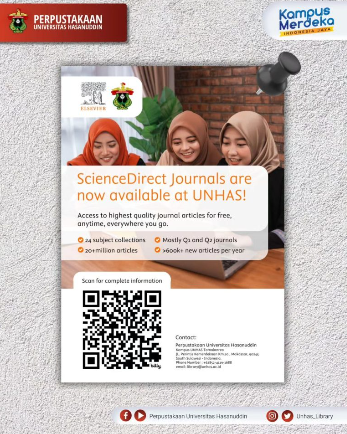 Makassar — Universitas Hasanuddin kini menyediakan fasilitas akses jurnal internasional secara gratis melalui platform ScienceDirect. Fasilitas ini diperuntukkan bagi seluruh mahasiswa Unhas yang membutuhkan referensi akademik berkualitas tinggi untuk mendukung kegiatan belajar, penelitian, dan publikasi ilmiah.