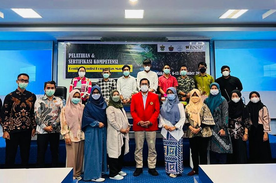 Tempat Uji Kompetensi (TUK) Fakultas Ilmu Kelautan dan Perikanan Universitas Hasanuddin bekerja sama dengan Lembaga Sertifikasi Profesi (LSP) Pusat Riset Oseanografi (PRO) Badan Riset dan Inovasi Nasional (BRIN) mengadakan Pelatihan dan Sertifikasi Kompetensi Penilai Komunitas Mangrove.