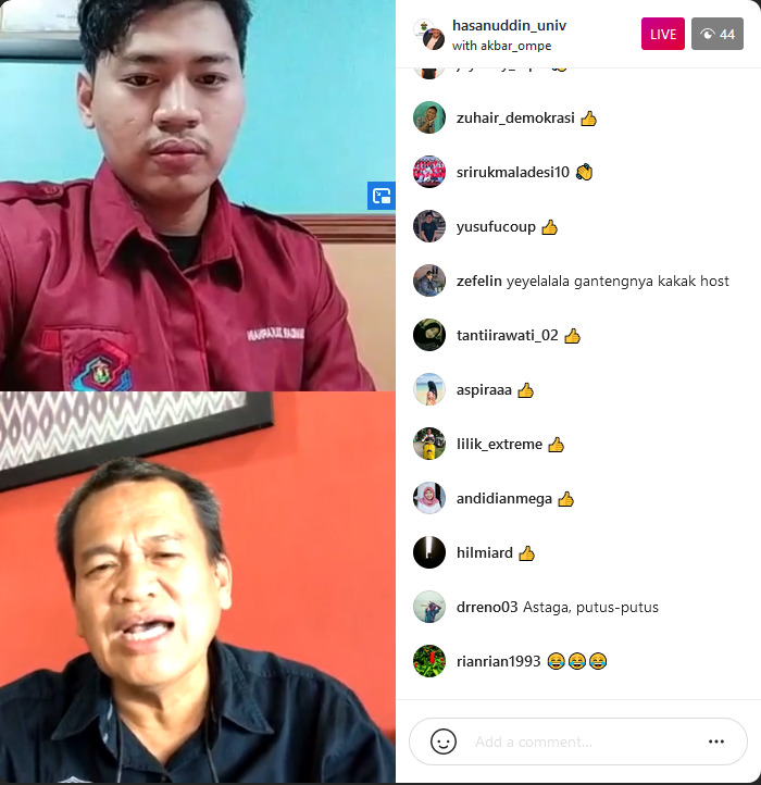 Kegiatan yang dipandu oleh Ahmad Ainun Iskandar (Student Volunteer Unhas) secara live melalui akun sosial media Instagram Unhas diikuti oleh sekitar 100 peserta. Kegiatan berlangsung dengan lancar hingga berakhirnya pukul 10.30 Wita.(*/mir)