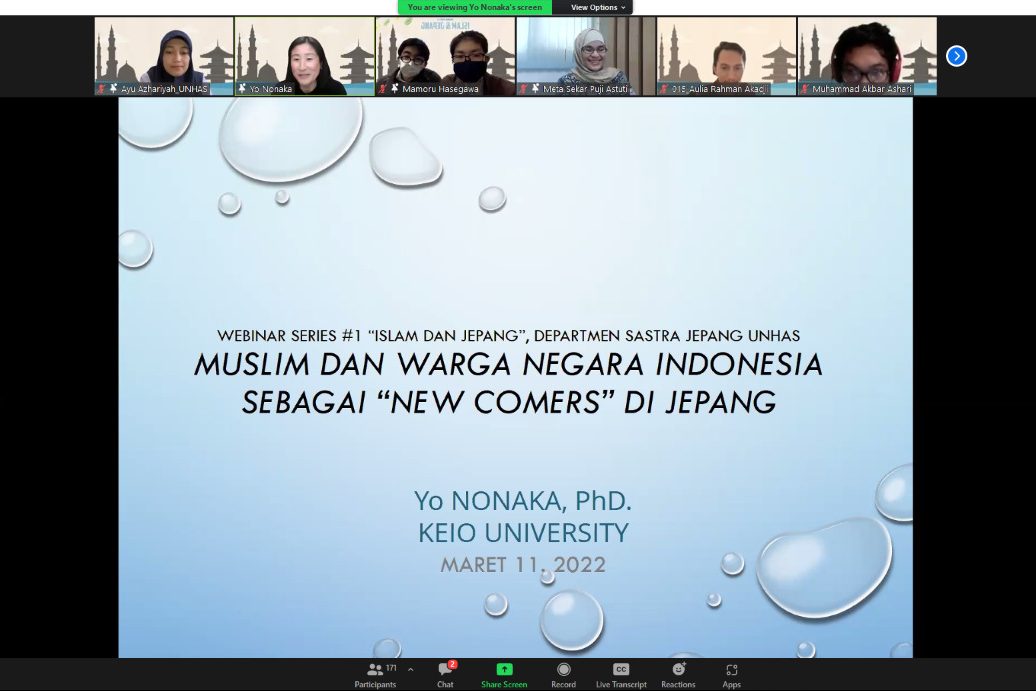 Departemen Sastra Jepang Fakultas Ilmu Budaya Universitas Hasanuddin mengadakan Seminar Series #1 dengan tema “Islam dan Jepang”. Kegiatan berlangsung mulai pukul 14.00 secara virtual melalui aplikasi zoom meeting, pada Jumat (11/3).