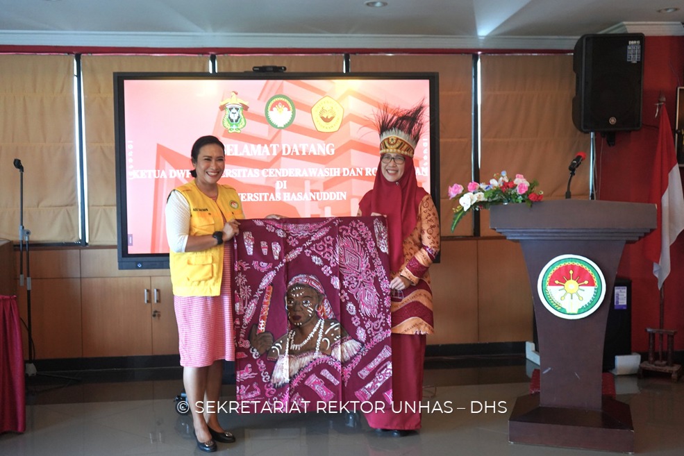 Kunjungan kerja pengurus DWP Universitas Cendrawasih dan rombongan diterima langsung oleh Ny. Nilla Mayangsari Ruslin (Wakil Ketua 1 DWP Unhas) mewakili Ketua DWP Unhas (Ny. Hartati Tanti Jamaluddin Jompa).