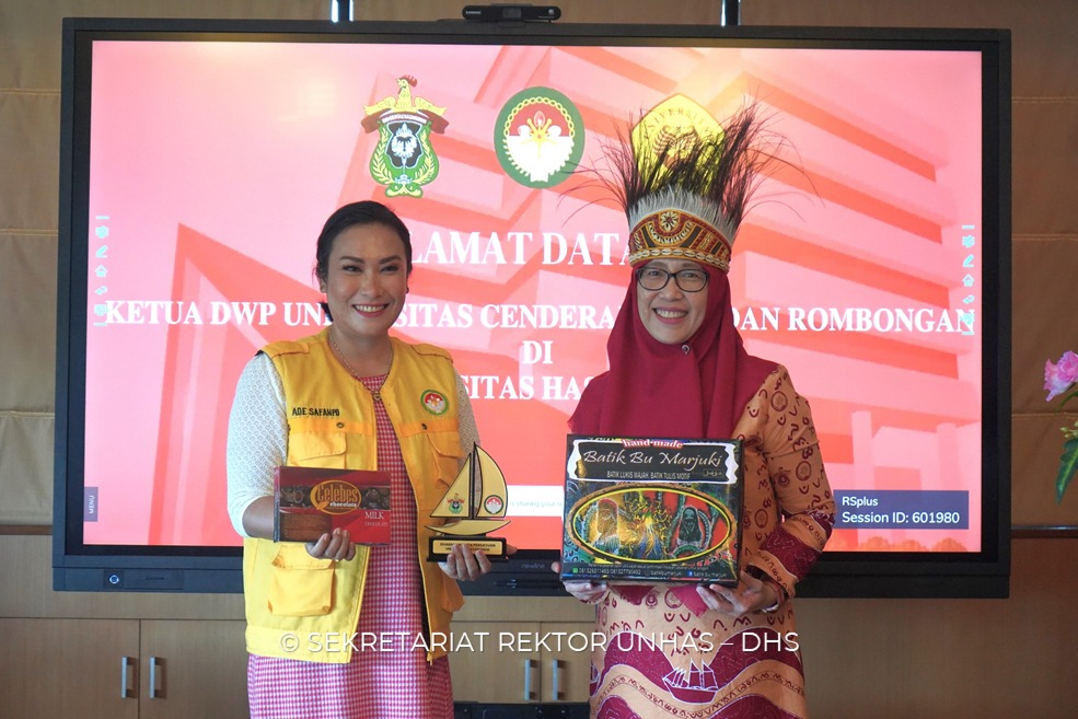 “Terima kasih atas sambutan yang diberikan kepada kami hari ini. Semoga kunjungan hari ini dapat memberikan kesan yang mendalam serta diharapkan dapat terjalin kerja sama yang lebih baik kedepannya. Kami mengharapkan DWP Unhas dapat pula berkunjung ke Universitas Cendrawasih,” jelas Ny. Ade Safanpo