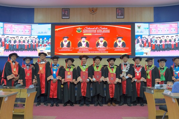 Universitas Hasanuddin menggelar Rapat Paripurna Senat Akademik Terbatas dalam rangka upacara penerimaan jabatan profesor bagi empat Guru Besar baru dari Fakultas Kedokteran. Kegiatan ini dilaksanakan pada Selasa (20/5), pukul 09.00 WITA, bertempat di Ruang Senat Akademik, Lantai 2 Gedung Rektorat Unhas, Kampus Tamalanrea, Makassar. Prosesi juga disiarkan secara langsung melalui kanal YouTube Senat Akademik Unhas.