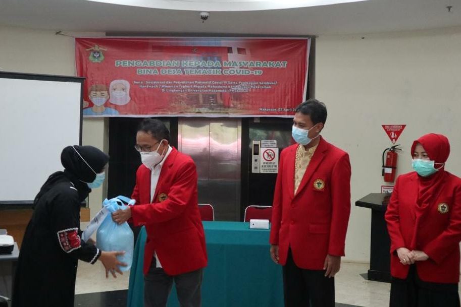 Selain sosialisasi, kegiatan ini juga diisi dengan pembagian sembako, cairan pembersih tangan, dan minuman herbal untuk masyarakat di sekitar lingkungan Unhas.