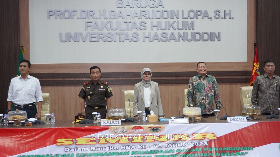 Fakultas Hukum Universitas Hasanuddin bekerja sama Kejaksaan Tinggi Sulawesi Selatan menggelar seminar nasional dalam rangka Hari Bhakti Adyaksa (HBA) ke-63 bertemakan “Optimalisasi Kewenangan Kejaksaan dalam Penanganan Tindak Pidana yang Merugikan Perekonomian Negara”.