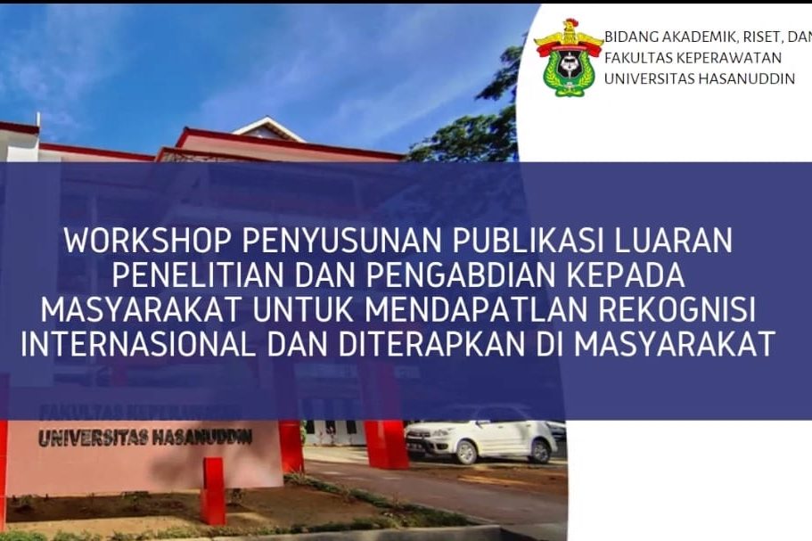 Fakultas Keperawatan (FKep) Universitas Hasanuddin menyelenggarakan Workshop “Penyusunan Publikasi Luaran Penelitian dan Pengabdian Kepada Masyarakat untuk Mendapatkan Rekognisi Internasional dan Diterapkan pada Masyarakat”.