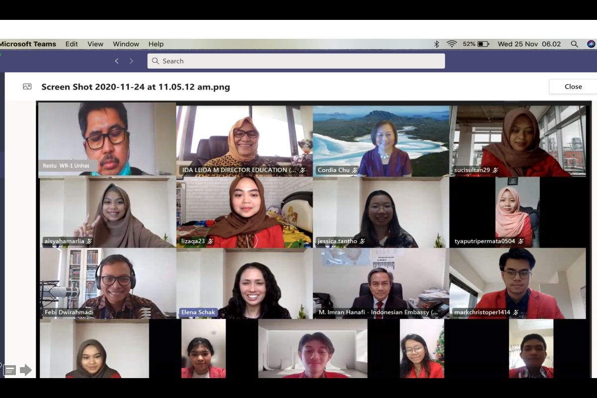Dalam wawancara pada Senin (14/12), Direktur Pendidikan Unhas, Dr. Ida Leida, SKM, M.Si menjelaskan bahwa kegiatan berlangsung pada tanggal 24 November 2020 ini turut dihadiri oleh Atase Pendidikkan Kedubes RI di Australia (M. Imran Hanafi), serta para dosen dari Griffith University, seperti Prof. Cordia Chu, Dr. Elena Schak dan Dr. Febi Darmadi.