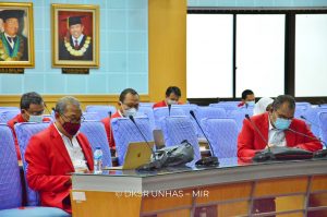 Rapat yang dipimpin langsung oleh Rektor Unhas, Prof. Dr. Dwia Aries Tina Pulubuhu, MA, berlangsung pukul 13.30 Wita, menerapkan protokol kesehatan Covid-19 di Ruang Senat Akademik, Lt. 2 Gedung Rekrotat Unhas, Kampus Tamalanrea, Makassar, Senin (26/10).