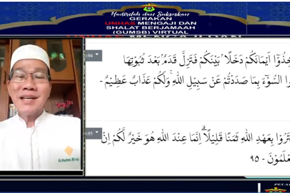 Universitas Hasanuddin kembali menyelenggarakan Gerakan Unhas Mengaji dan Shalat Berjamaah (GUMSB). Kegiatan berlangsung mulai pukul 16.00 Wita secara virtual melalui aplikasi zoom meeting, Selasa (4/4),