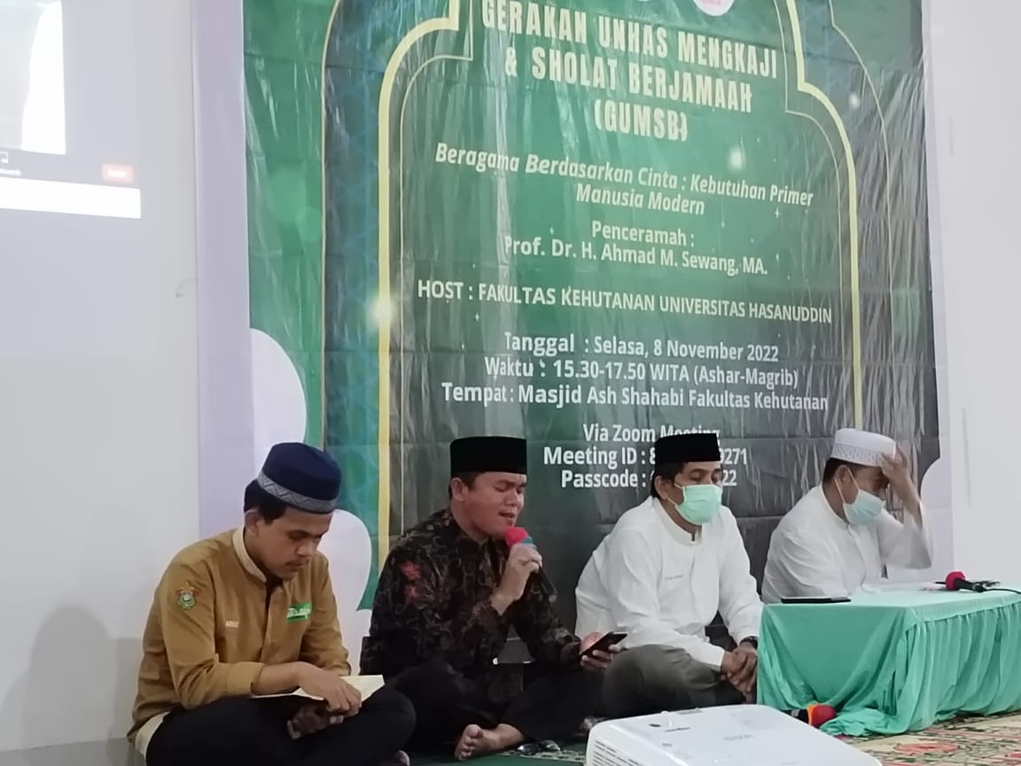 Universitas Hasanuddin kembali menyelenggarakan kegiatan Gerakan Unhas Mengkaji dan Sholat Berjamaah (GUMSB). Pada kesempatan ini Fakultas Kehutanan Unhas bertindak sebagai host. Kegiatan yang menjadi agenda rutin Unhas setiap pekan berlangsung mulai pukul 15.00 Wita secara luring terbatas di Masjid Ash Shahabi Fakultas Kehutanan Unhas, dan terhubung secara virtual melalui aplikasi zoom meeting, Selasa (8/11).