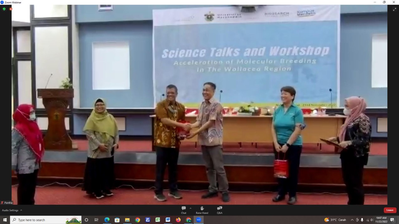 Hasanuddin University (UNHAS) through the Faculty of Forestry and the Institute for Research and Community Service (LPPM) in collaboration with Biosearch Technologies Genomic Analysis by LGC and ScienceWerke held an international webinar entitled Science Talk with the theme “Acceleration of Molecular Breeding In The Wallacea Region”. The activity took place starting at 09.00 Wita offline at the LPPM UNHAS Hall and connected directly through the zoom meeting application, Tuesday (11/22).