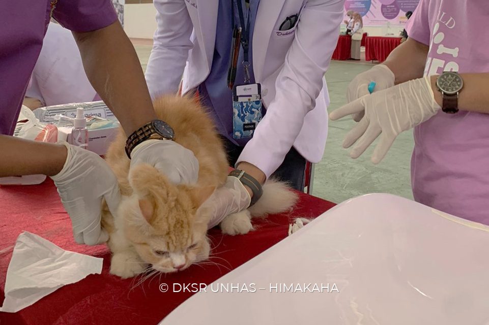 Dr. dr. H. Andi Alfian Zainuddin, M.KM selaku anggota seksi pengabdian masyarakat panitia Dies Natalis ke-64, menjelaskan bahwa kegiatan ini merupakan serangkaian kegiatan besar dari Prodi Kedokteran Hewan pada acara Cat Show yakni perlombaan untuk kucing kesayangan yang telah di laksanakan di Kabupaten Takalar beberapa waktu lalu.