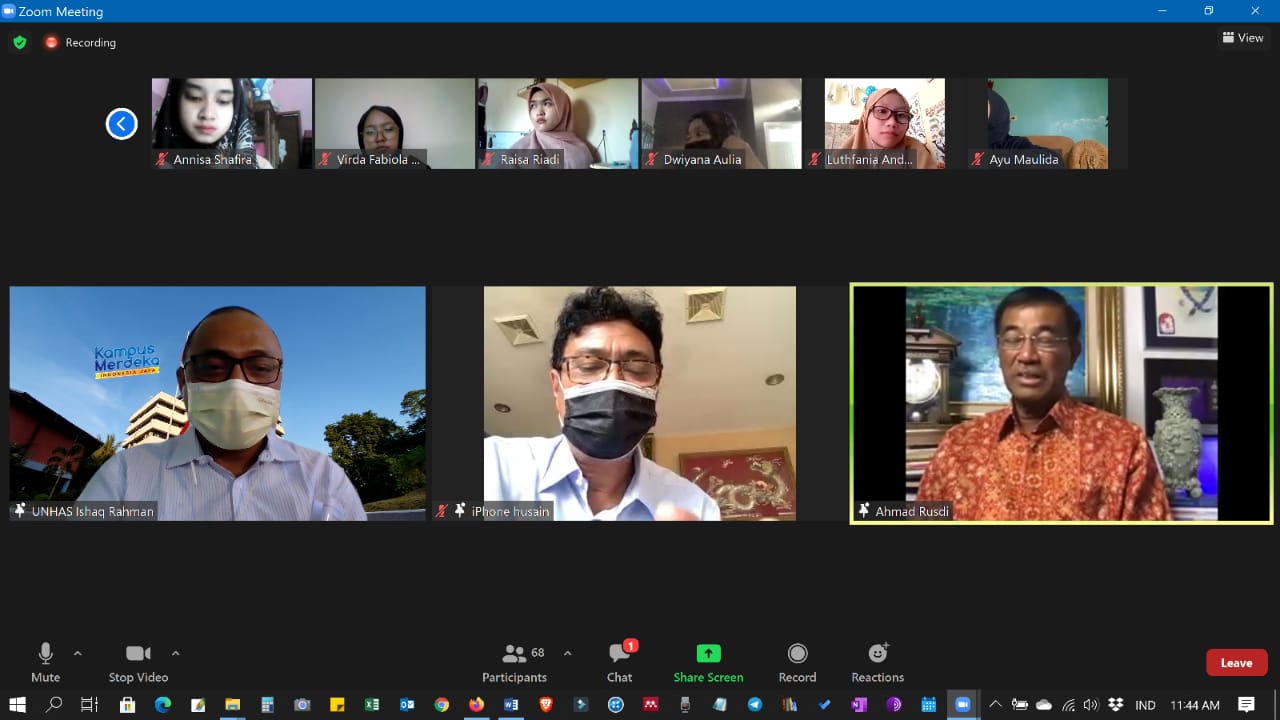 Mahasiswa Program Studi Ilmu Hubungan Internasional Fakultas Ilmu Sosial dan Ilmu Politik (FISIPOL) Universitas Hasanuddin menerima kuliah tamu dari Duta Besar Ahmad Rusdi, Rabu (25/11), mulai pukul 10.00 Wita. Kuliah berlangsung secara daring melalui platform zoom meeting.
