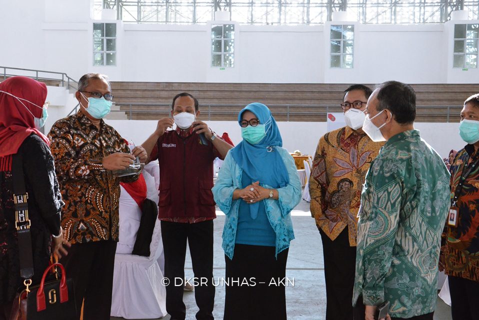 Mewakili Kementerian Kesehatan RI, Direktur Jenderal Pelayanan Kesehatan, Prof. dr. H. Abdul Kadir, Ph.D., Sp.THT-KL (K), MARS., meninjau pelaksanaan vaksinasi massal Covid-19 dosis dua yang berlangsung di Universitas Hasanuddin. Vaksinasi massal ini merupakan kerja sama Unhas dengan Rumah Sakit Vertikal di Makassar, RSPTN Unhas, Dinas Kesehatan Provinsi dan Pemerintah Kota Makassar. Kunjungan berlangsung mulai pukul 08.30 Wita di JK Arenatorium GOR Unhas, Kampus Tamalanrea, Makassar, Selasa (16/02).