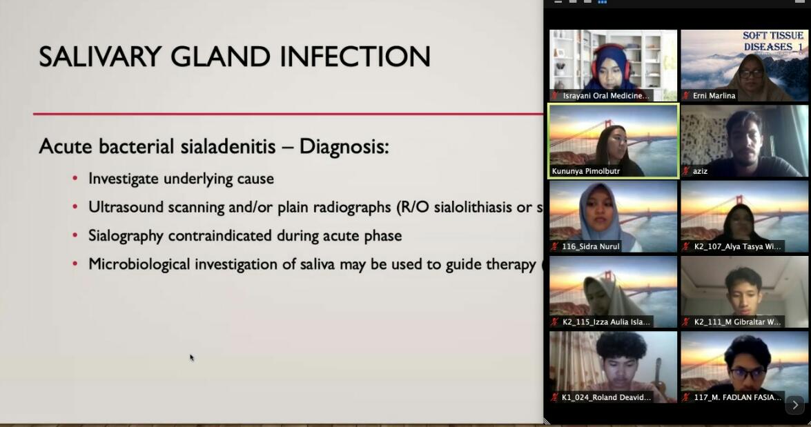 Sebagai upaya untuk meningkatkan atmosfer internasional di Program Kelas Internasional, FKG Unhas hadirkan dosen dari luar negeri untuk memberikan kuliah di blok Penyakit Jaringan Lunak Rongga Mulut secara virtual melalui aplikasi zoom meeting.
