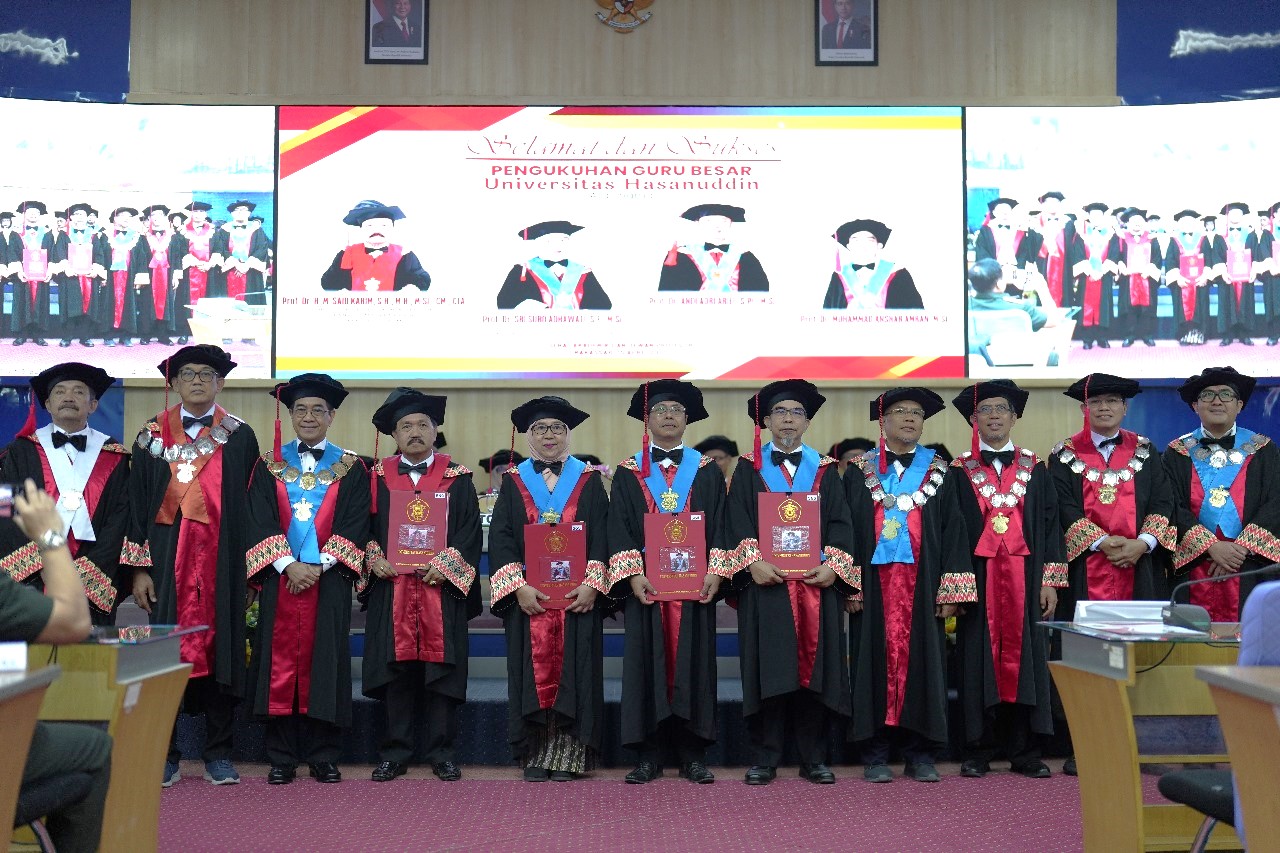 Universitas Hasanuddin menyelenggarakan Rapat Paripurna Senat Akademik terbatas dalam rangka upacara Penerimaan Jabatan Profesor empat guru besar baru pada Fakultas Hukum (FH) dan Fakultas Ilmu Kelautan dan Perikanan (FIKP).
