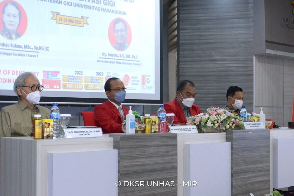 Turut hadir mewakili Rektor Unhas Prof. Dr. Ir. H. Nasaruddin Salam (Sekretaris Universitas), Dekan FKG Unhas (Prof. drg. Muhammad Ruslin, M.Kes., Ph.D., Sp.BM (K)), beserta jajaran pimpinan lingkup FKG Unhas.