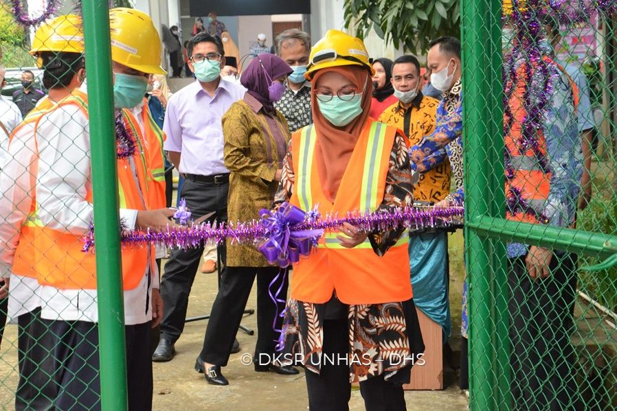 Rektor Universitas Hasanuddin, Prof. Dr. Dwia Aries Tina Pulubuhu, MA., melakukan peletakan batu pertama sebagai awal dimulainya pembangunan Gedung Halal and Health Center Fakultas Kesehatan Masyarakat (FKM) Unhas.