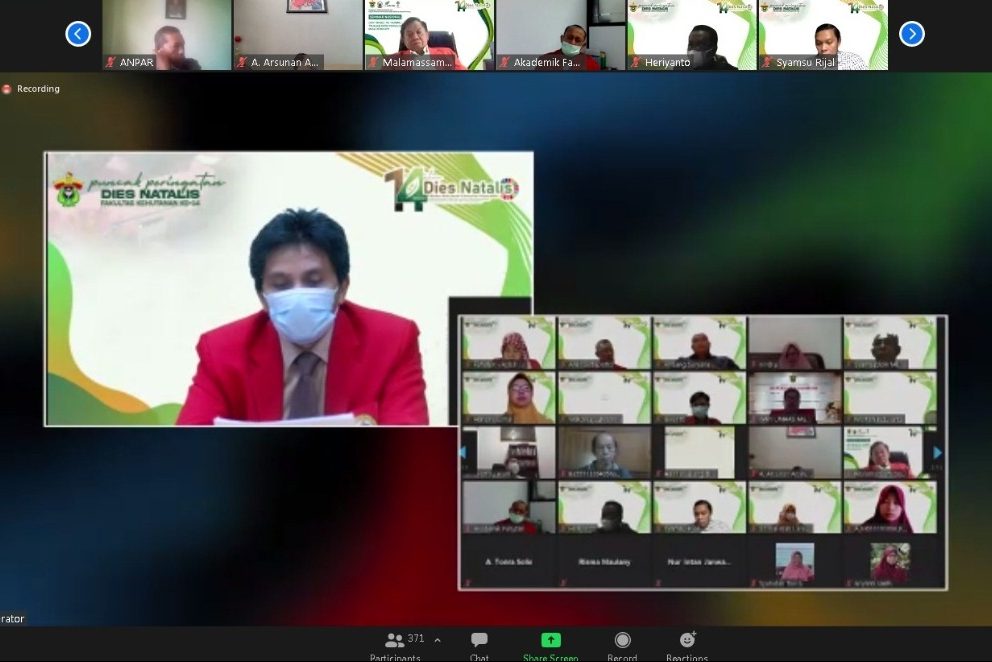 Perayaan puncak Dies Natalis ke-14 Fakultas Kehutanan dibuka secara resmi oleh Wakil Rektor Bidang Akademik Unhas Prof. Dr. Ir. Restu, M.P. Dalam sambutannya, Prof Restu menyampaikan apresiasi atas capaian kinerja Fakultas Kehutanan dalam mengelola pendidikan tinggi kehutanan, serta berkontribusi dalam pembangunan kehutanan baik secara regional maupun internasional.
