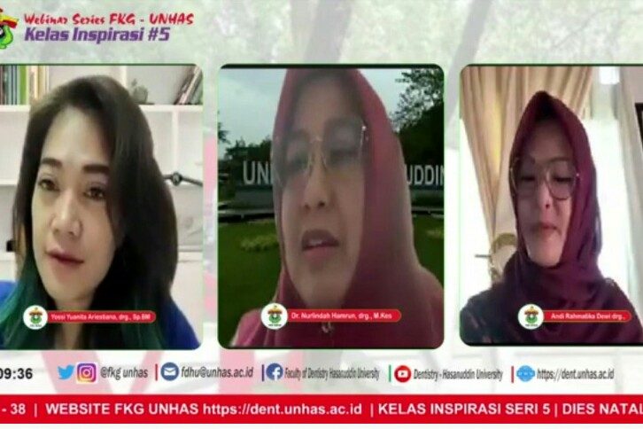 Fakultas Kedokteran Gigi (FKG) Universitas Hasanuddin kembali menyelenggarakan Webinar Kelas Inspirasi seri kelima yang menghadirkan drg. Andi Rachmatika Dewi (Ketua Komisi B DPRD Sulsel) sebagai narasumber.
