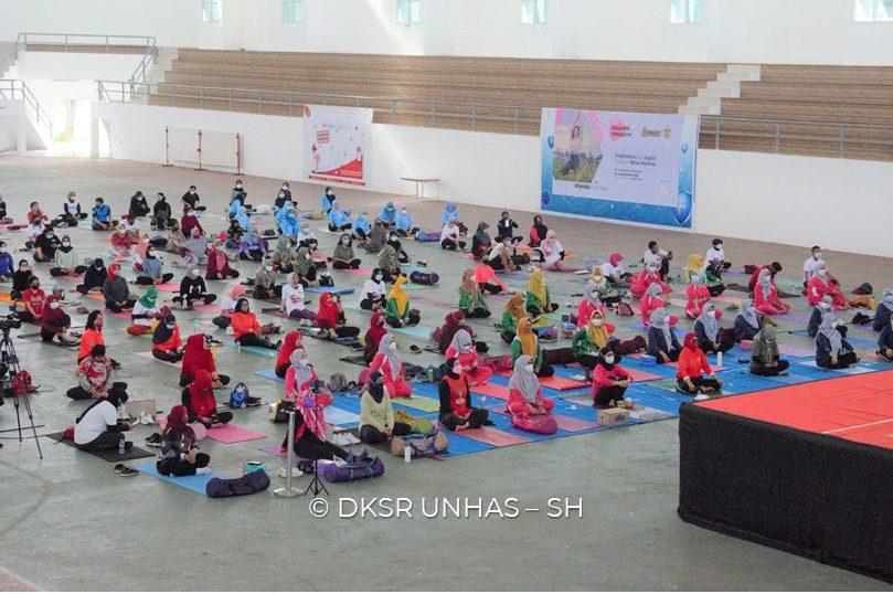 Yoga for Immunity digelar di Gelanggang Olah Raga (GOR) JK Arenatorium, Kampus Unhas, Tamalanrea, Makassar, Sabtu (4/9) mulai pukul 08.00 Wita. Sebanyak lebih 200 peserta menghadiri kegiatan ini, namun dengan tetap menerapkan protokol kesehatan untuk pencegahan penularan Covid-19.