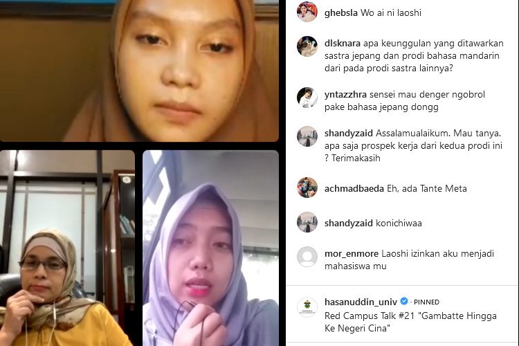 Direktorat Komunikasi Universitas Hasanuddin kembali menyelenggarakan program bertajuk Red Campus Talk edisi #21 dengan tema “Gambatte Hingga Ke Negeri Cina: Seputar Prodi Sastra Jepang dan Prodi Bahasa Mandarin dan Kebudayaan Tiongkok Unhas”. Program ini berlangsung pukul 16.00 Wita secara live melalui akun instagram @hasanuddin_univ, Selasa (30/03).