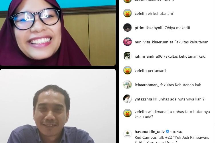 Direktorat Komunikasi Universitas Hasanuddin kembali menyelenggarakan program bertajuk Red Campus Talk edisi #22 dengan tema “Yuk Jadi Rimbawan, Si Ahli Paru-Paru Dunia! : Seputar Prodi Kehutanan Unhas”. Program ini berlangsung pukul 16.00 Wita secara live melalui akun instagram @hasanuddin_univ, Rabu (31/03).