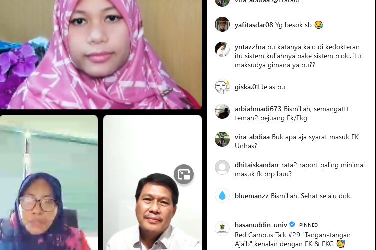 Edisi Red Campus Talk kali ini dipandu oleh Masyitha Nur Ramadhani (Student Volunteer Unhas) dan diikuti secara live oleh kurang lebih 100 follower instagram @hasanuddin_univ.