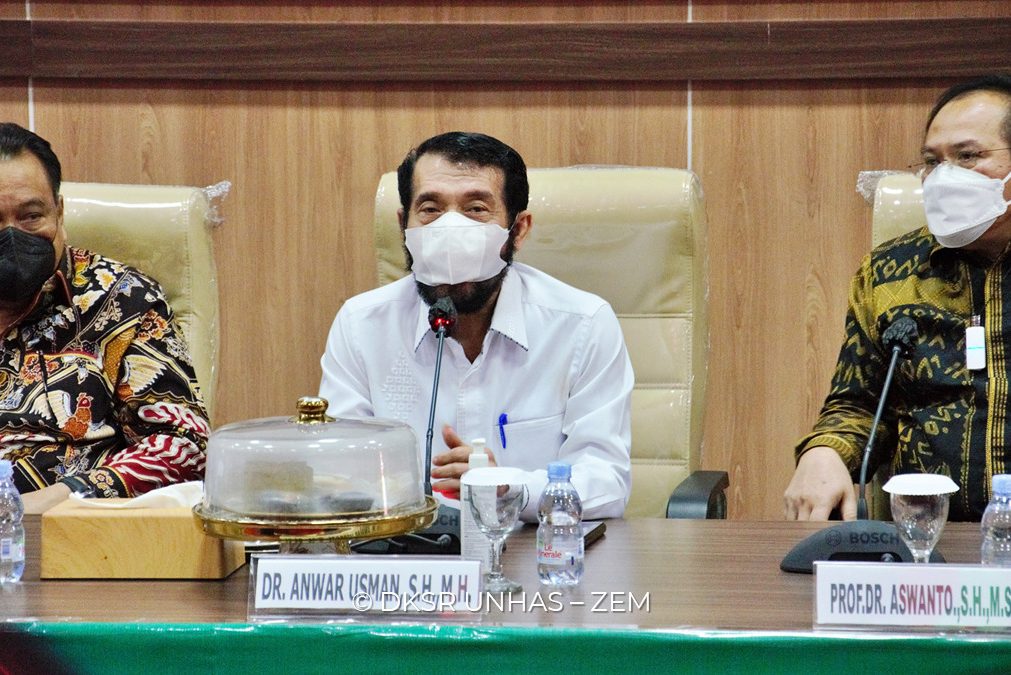 Wakil Rektor Bidang Riset, Inovasi dan Kemitraan Prof. dr. Muh. Nasrum Massi, Ph.D., menyampaikan bahwa kehadiran jajaran pejabat Mahkamah Konstitusi RI ke Unhas merupakan suatu kehormatan yang tinggi. Unhas akan mengoptimalkan segala bentuk kerja sama yang akan dijalankan.