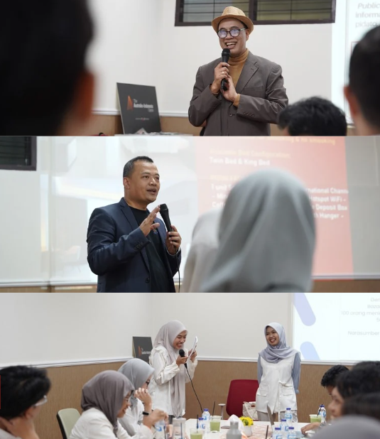 After the lunch break, participants continued with Fundamentals of Journalism led by Nurul Hidayah, S.I.Kom., followed by an inspiring Sharing Session with Muhammad Aflahal Mukmin, a representative from STUVO Batch III, who shared his valuable experiences as a former volunteer.