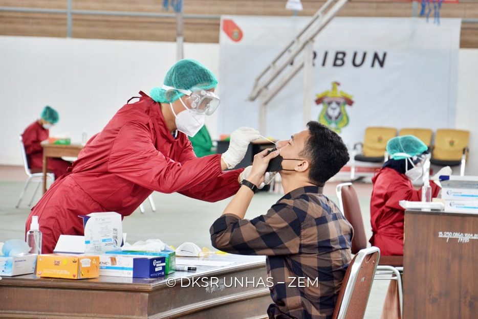 Hari pertama pelaksanaan Test Swab Antigen Universitas Hasanuddin diikuti secara antusias oleh mahasiswa dan tenaga pendidik. Hal ini terlihat dari banyaknya peserta yang berdatangan ke lokasi kegiatan yang khusus diperuntukkan bagi mahasiswa angkatan 2020 dan 2021.