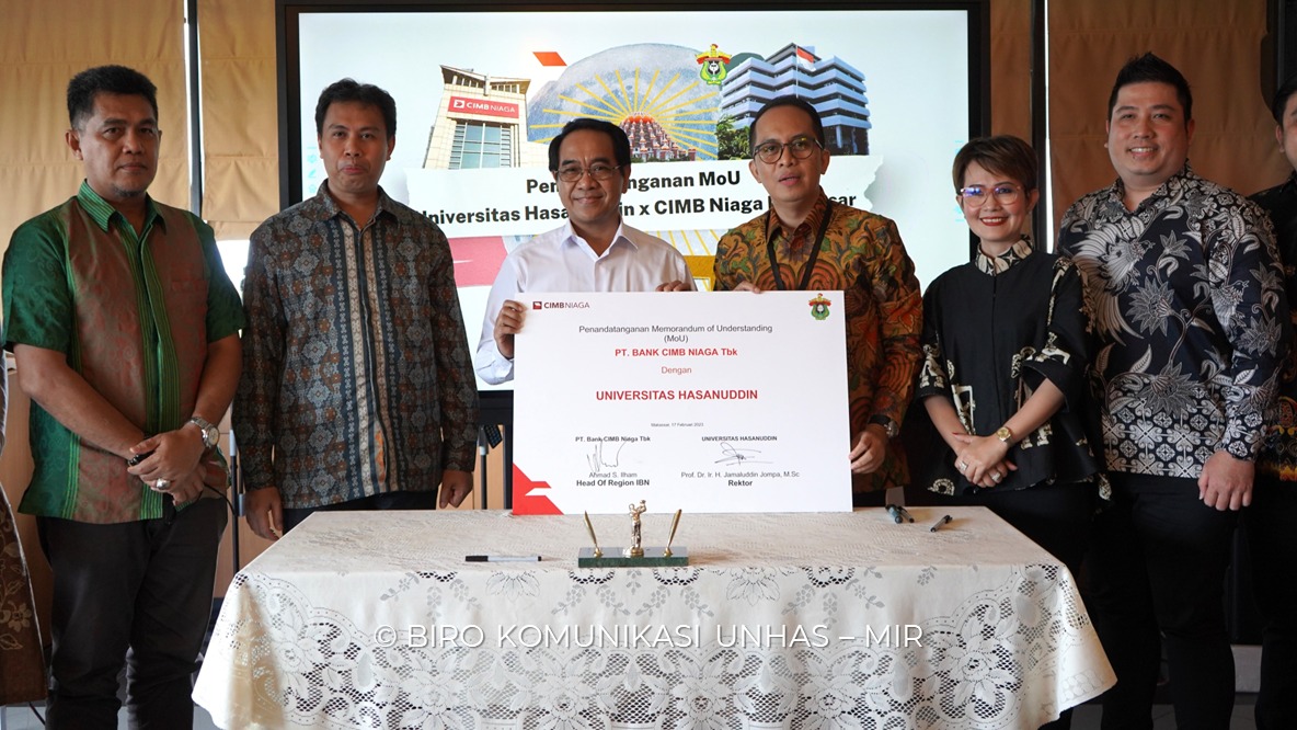 Universitas Hasanuddin dan PT. Bank CIMB Niaga Tbk. sepakati kerja sama dalam bidang pengembangan Tridarma Perguruan Tinggi. Kesepakatan tersebut tertuang dalam penandatanganan Memorandum of Understanding (MoU) antara Rektor Unhas Prof. Dr. Ir. Jamaluddin Jompa, M.Sc., dan Head of Region – Indonesia Timur & Bali Nusra CIMB Niaga Ahmad S. Ilham.