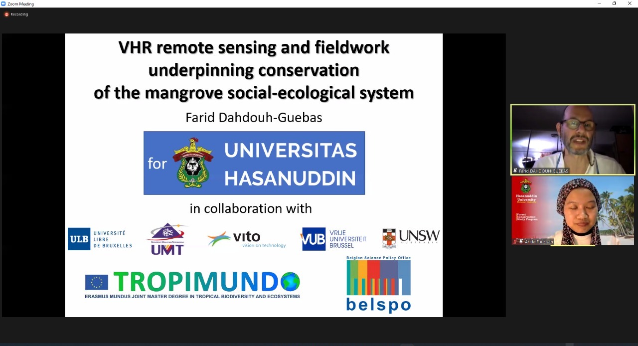 Universitas Hasanuddin (Unhas) through the Faculty of Forestry held a webinar entitled “Top Scientist Webinar Series” with the theme “VHR (Very High Resolution) Remote Sensing and Fieldwork Underpinning Conservation of the Mangrove Social-Ecological System” by Prof. Farid Dahdouh- Guebas (Vrije Universiteit Brussel (VUB), Belgium). The event took place virtually through the zoom meeting application on Monday morning (27/6).