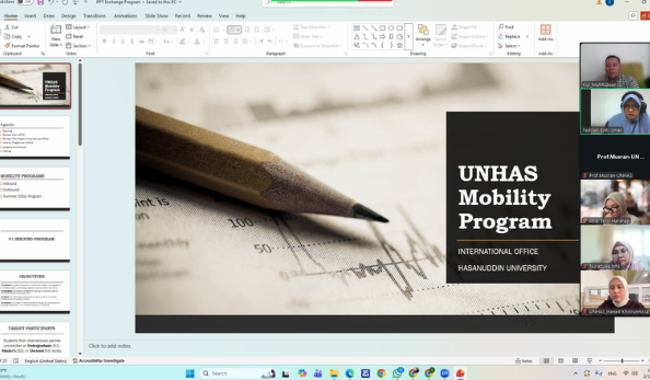 Following an initial visit from Universiti Tun Hussein Onn Malaysia (UTHM) on 4 February 2026, Hasanuddin University (UNHAS) through its International Office (IO) initiated a follow-up virtual meeting on 9 February 2026. This meeting served as a strategic step to deepen the partnership between the two institutions, specifically focusing on the expansion of student and faculty mobility. Representing UNHAS were Muhammad Ridwan (Secretary of IO) and Haniek Khoirunnissa, M.Sc. (IO Task Force and Lecturer at the Faculty of Economics and Business).