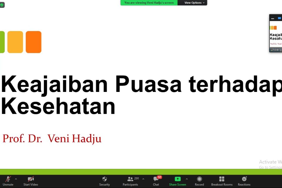 Hadir sebagai narasumber untuk mengisi sesi ceramah Islamiah yakni Ust. Prof. dr. H. Veny Hadju, M.Sc., Ph.D., yang menyampaikan terkait “Keajaiban Puasa Terhadap Kesehatan”.