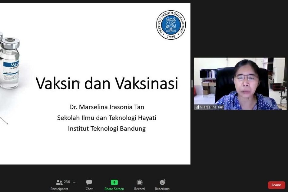 Universitas Hasanuddin melalui Fakultas Farmasi menyelenggarakan kuliah tamu dengan menghadirkan narasumber Dr. Marselina Irasonia Tan dari Sekolah Ilmu dan Teknologi Hayati (SITH) Institut Teknologi Bandung. Kuliah tamu mengenai vaksin dan vaksinasi tersebut berlangsung mulai pukul 08.00 Wita secara virtual melalui aplikasi zoom meeting, Jumat (27/11).