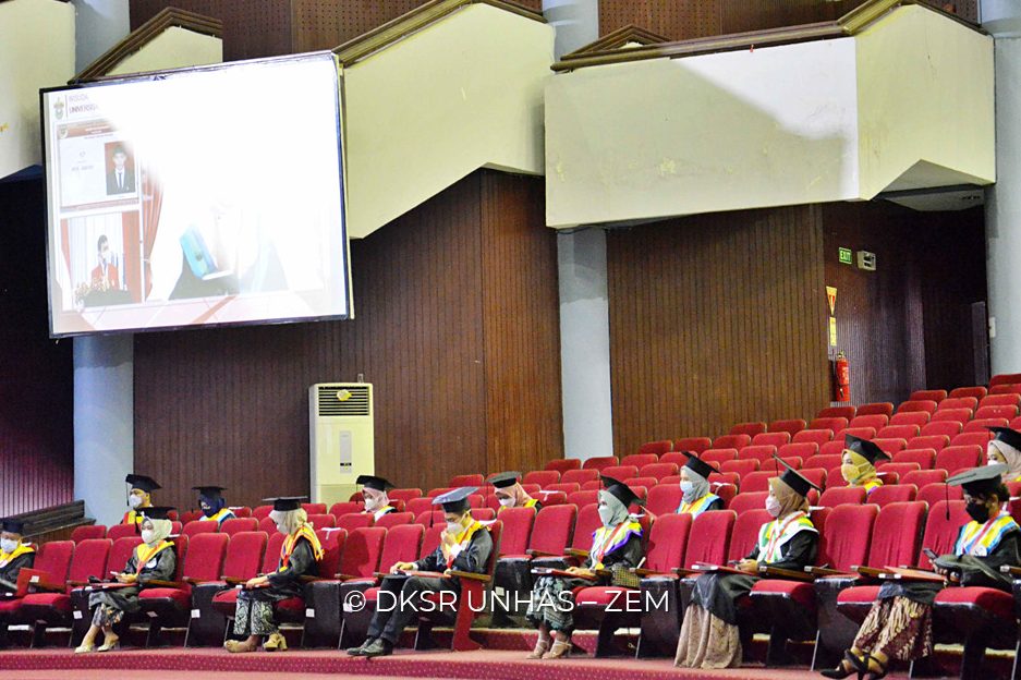 Wisuda dihadiri secara terbatas oleh Rektor Unhas, para Wakil Rektor, Dekan di lingkup Unhas, Majelis Wali Amanat, dan Ketua Senat Akademik.