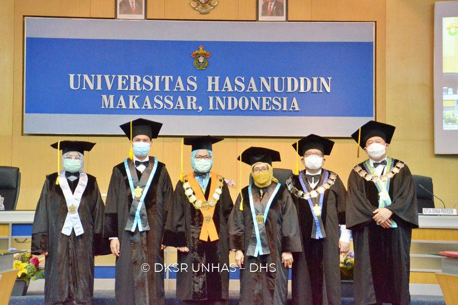 Proses pengukuhan dihadiri oleh Rektor Unhas, Prof. Dr. Dwia Aries Tina Pulubuhu, MA., Ketua, Sekretaris, dan Anggota Senat Akademik, Dewan Profesor, tamu undangan, serta keluarga besar dari dua profesor yang dikukuhkan.