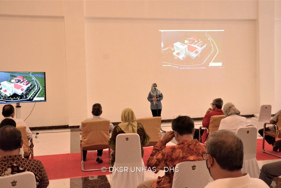 Pada kesempatan yang sama, Wakil Rektor Bidang Perencanaan, Keuangan dan Infrastruktur Prof. Ir. Sumbangan Baja, M.Phil, Ph.D., menjelaskan terkait perkembangan pembangunan Hotel and Training Center. Beliau mengatakan, gagasan pembangunan muncul dari berbagai pertimbangan dengan fokus utama mendukung kegiatan akademik hingga peningkatan pendapatan yang merupakan wujud serta tuntutan kemandirian Unhas sebagai PTN-BH.