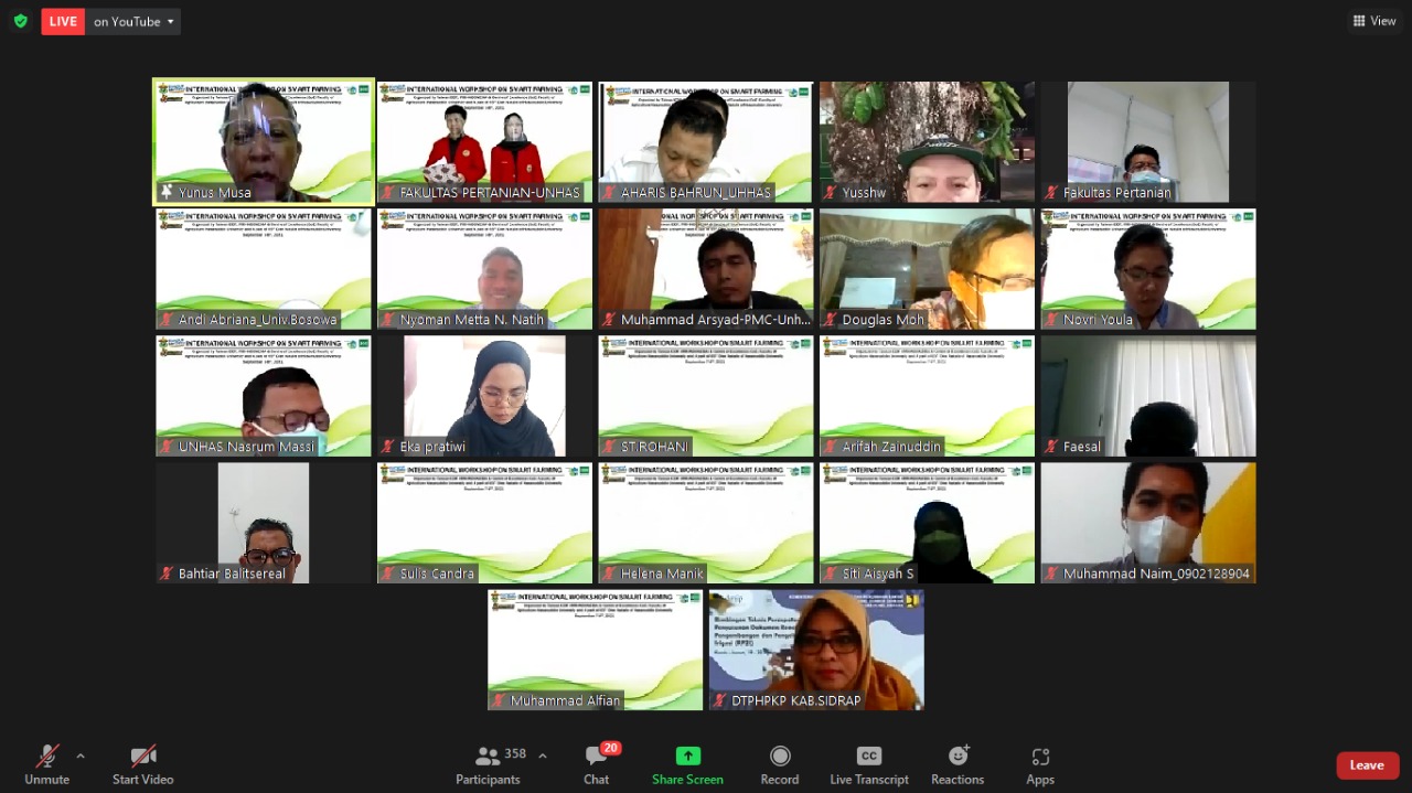 Through the Faculty of Agriculture, Universitas Hasanuddin (Unhas) held an international workshop on “Implementation of Smart Farming Innovation Technologies in the 4.0 era to Strengthen the Food Crop Production for Sustainable Food Security”. The workshop was carried out virtually using the Zoom meeting application on Tuesday (07/09).