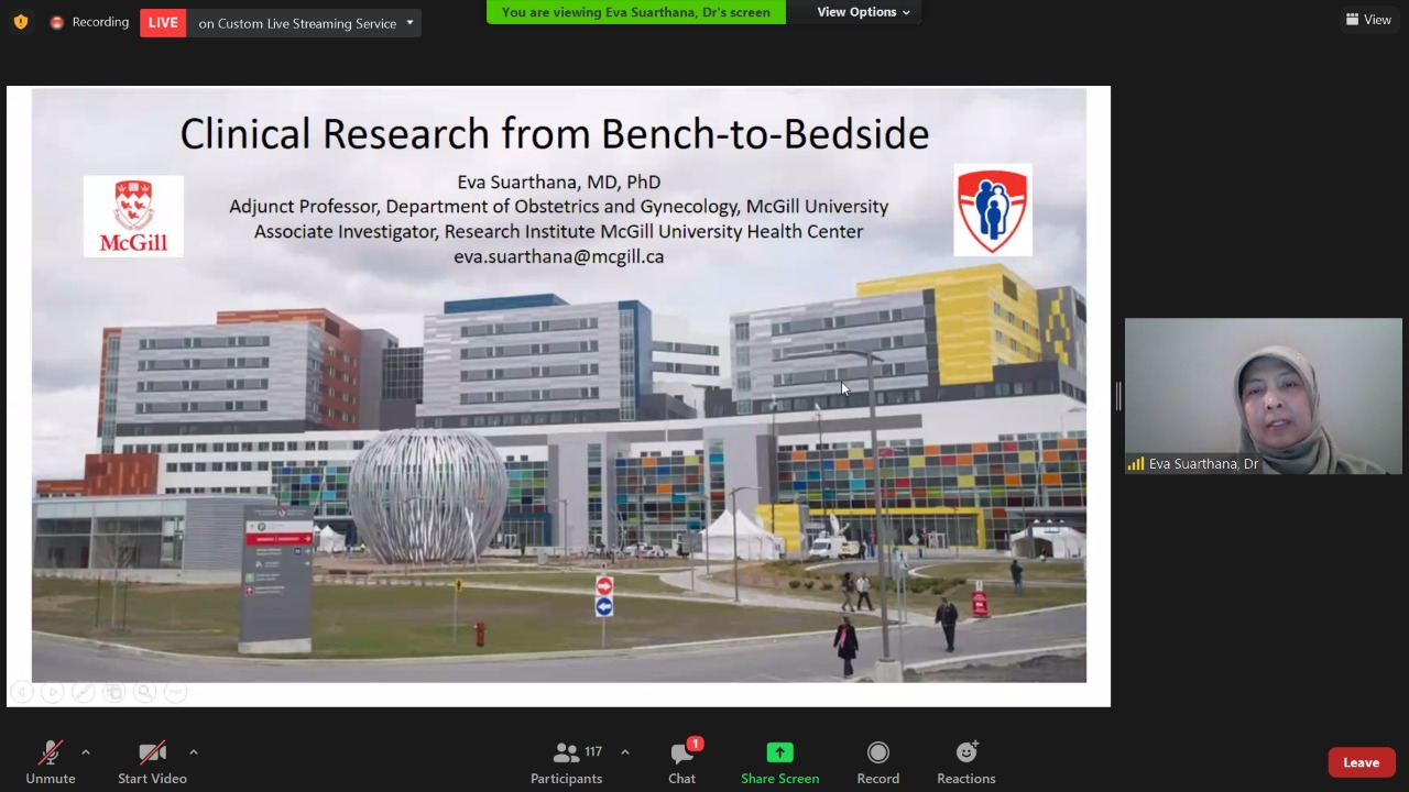 Fakultas Kedokteran (FK) Universitas Hasanuddin bertindak sebagai host dalam penyelenggaraan Virtual Public Lecturer (VPL) dengan topik “Clinical Research from Bench-to-Bedsite”. Acara yang menghadirkan Eva Suarthana, MD., Ph.D., (adjunct Professor, Departemen Obstetri dan Ginekologi, McGill University) sebagai narasumber berlangsung mulai pukul 10.00 Wita melalui aplikasi zoom meeting dan live di kanal YouTube FK Unhas, Jumat (29/01).